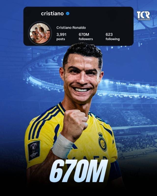 C罗ins粉丝数打破6.7亿,仅次于ins官方账号粉丝数